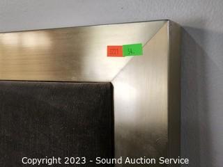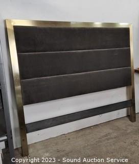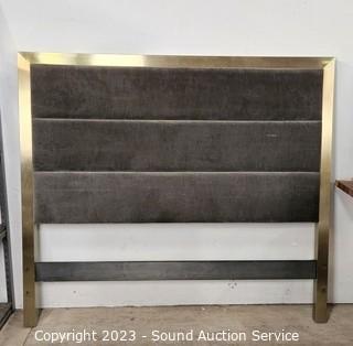 Lot #0054: Brushed Brass Finish Upholstered Queen Headboard