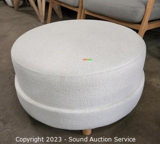 Lot #0027: Ivory Upholstered Contemporary Ottoman