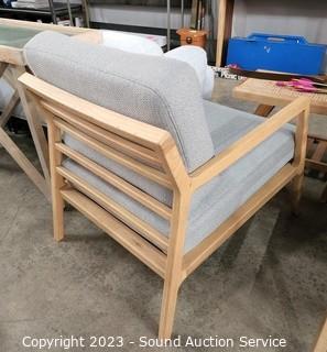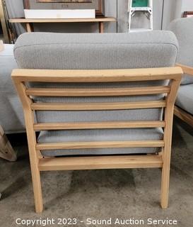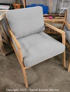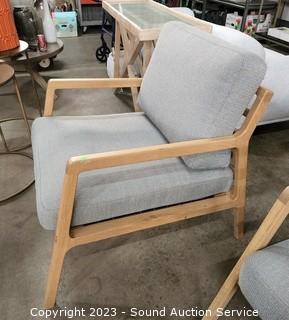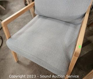 Lot #0040: Nice Article Grey Upholstered Oak Framed Arm Chair
