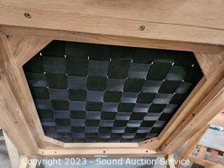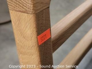 Lot Details: 29" H x 27.5" W x 18" to seat. Woven seat support, solid wood construction, well made. Don't see any issues.