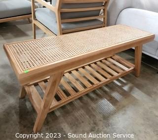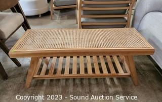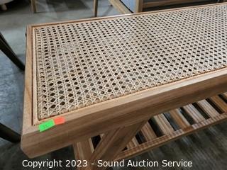 Lot #0051: Nice Teak? Cane Top Table