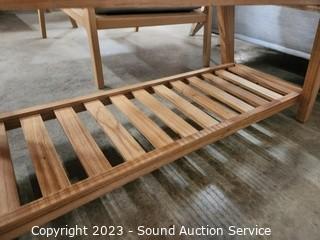 Lot Details: Not sure the wood kind of looks teak or maybe camphor. 18" H x 43" x 14.5"