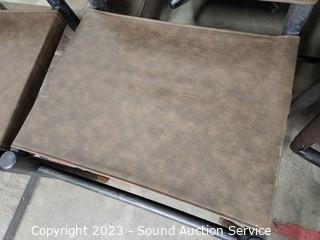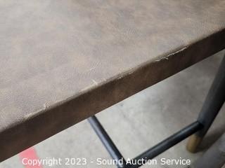 Lot Details: Wood Construction with vinyl back & seat. 33" H x 20" W x 20" to seat. One seat has some wear to right edge, don't see any other issues. Made in Vietnam. Very light, easy to move.