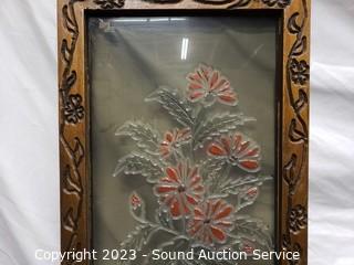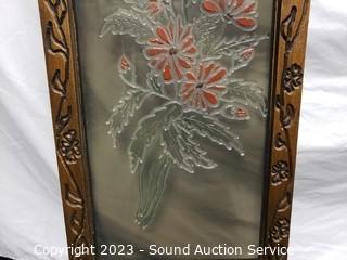Lot #0259: Carved Framed Acrylic Floral Wall Decor