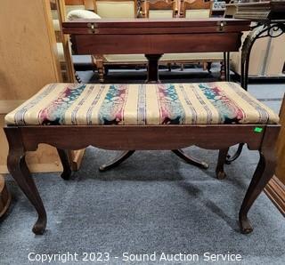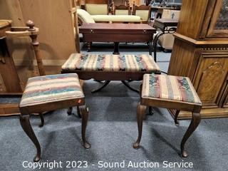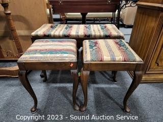 Lot #0022: Cherry Cabriole Leg Re-Upholstered Stools & Bench