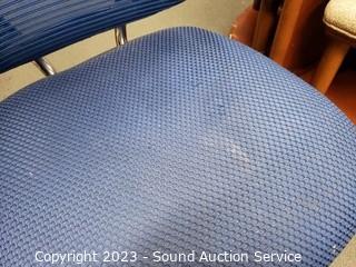 Lot Details: Some staining on seat. Blue upholstery, chrome finish. 16" to 20" to seat.