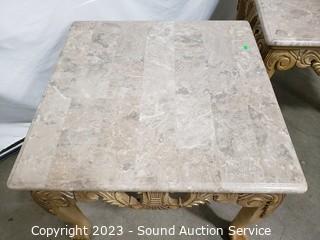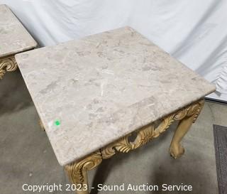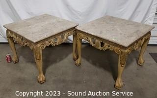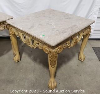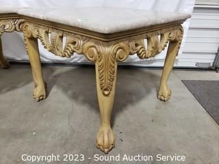Lot #0003: Ornate Claw Foot Bisque Stone Top Side Tables