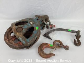 Lot #0172: Skookum A-10R 10" Steel Pulley & 2 Hooks