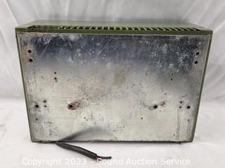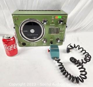 Lot Details: Comes with mic. Untested, cord needs to be repaired, microphone has some cuts in cord as well. Top of radio has a cord cut into through the venting. Various other wear to finish. 8.5" x 12.5" W x 5" D.