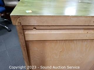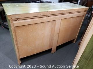 Lot Details: Appears to be solid wood construction, dovetail joinery. Various wear to finish, be a great project piece. 32" H x 51.5" W x 19.5" D.