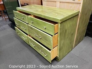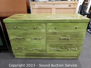 Lot #0011: Vtg. Green Painted Solid Wood 6-Drawer Dresser
