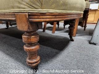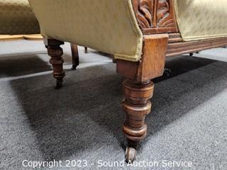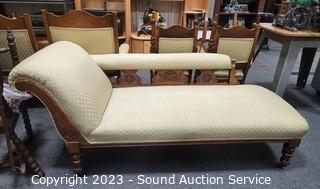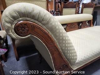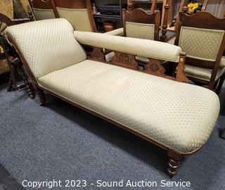 Lot #0043: Vtg. Mahogany Ivory Upholstered Chaise Lounge