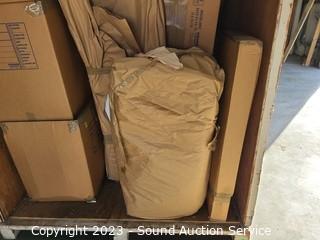 11 vaults, each vault is approx. 70" & 95" H x 60" W x 84" D. Refer to photos for vault contents, what you see in the photos is what we see, we have not gone through vaults. Preview online only, contents of vaults may not be gone through. Vaults themselves & blankets not included. As is, no refunds. $100, deposit required at the close of the auction upon winning a vault, refunded after complete removal of vault contents.