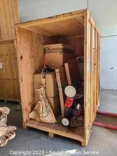 11 vaults, each vault is approx. 70" & 95" H x 60" W x 84" D. Refer to photos for vault contents, what you see in the photos is what we see, we have not gone through vaults. Preview online only, contents of vaults may not be gone through. Vaults themselves & blankets not included. As is, no refunds. $100, deposit required at the close of the auction upon winning a vault, refunded after complete removal of vault contents.