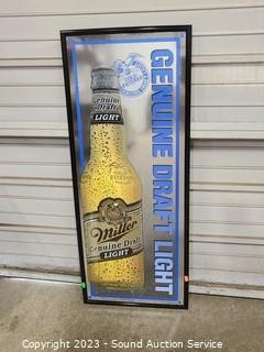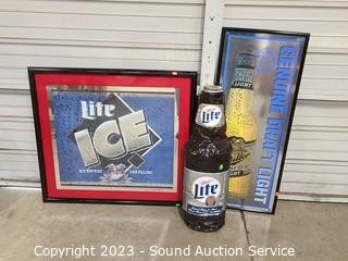 Lot Details: 15" x 37" & 29" x 32" signs, some scuffs on frame. Miller Inflatable 28" x 8".