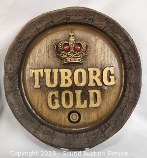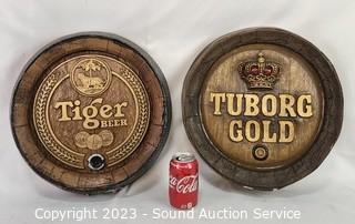 Lot #0048:     2 Vintage Faux Barrel Composite Beer Signs