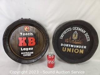 Lot #0056: 2 Vintage Faux Barrel Composite Beer Signs