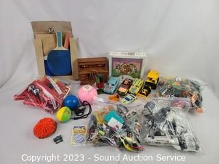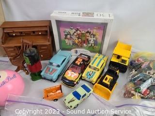 Lot Details: Jigsaw puzzle, diecast NASA shuttles, army men, other diecast vehicles, ping pong paddles & more. Refer to photos for lot contents.
