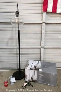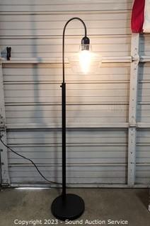 Lot #0294: Black Finish Glass shade Floor Lamp - Works