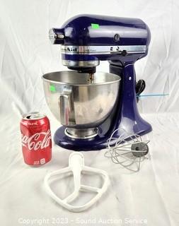 Lot #0291: Blue KitchenAid Countertop Mixer w/2 Attachments
