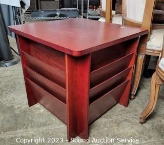 Lot #0034: Bright Cherry Finish Side Table Magazine Rack
