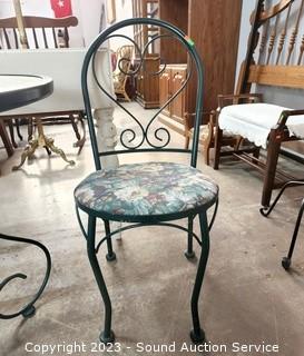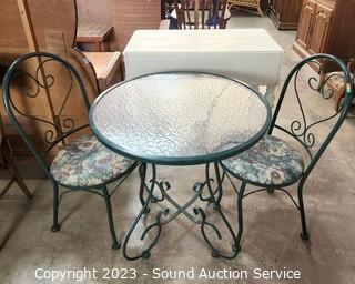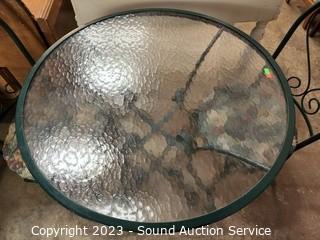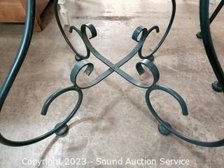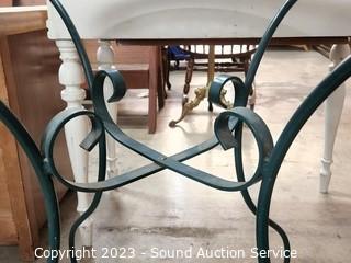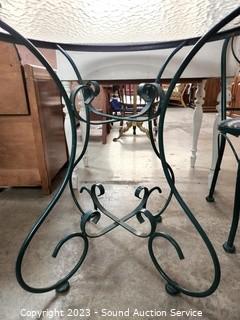 Lot #0024: Green Metal & Glass Top Patio Table & Chair Set