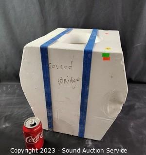 Lot Details: Has embossed image of covered bridge 15" x 15" x 13",