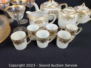 Lot #0241: Noritake Gold Accent China Set & Stemware