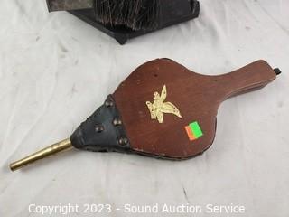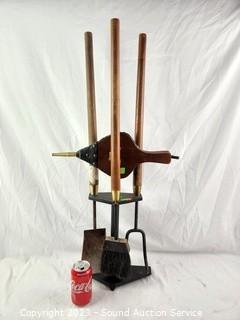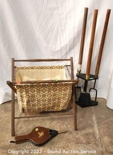 Lot #0299: Vtg. Fire Poker Set, Billows, Knitting Bag