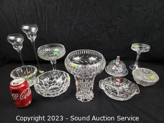 Lot #0177: 11pc Crystal & Clear Glassware Decor