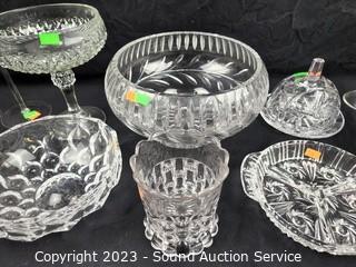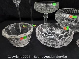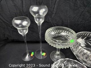 Lot Details: Covered Dish, compote, cheese dish, votives, bowls. Up to 12" tall, 3" to 10" Dia. Don't see any major issues.