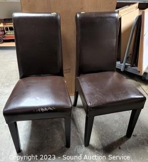 Lot #0194: 2 Brown Vinyl Accent Chairs
