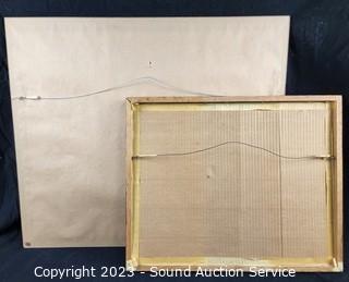 Lot Details: Seascape signed H.June Porter, 24.5" x 28.5". Eugene Landry 1978 Snow Scene painting, 21" x 17", ftape that holds it into frame has come free, falling out of frame.