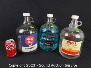 Lot #0278: 3 Vtg. Glass One Gallon Bottles