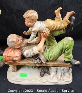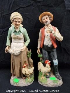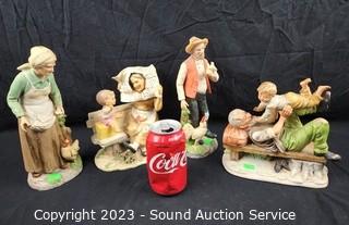 Lot Details: The 2 with chickens are Homco, others unmarked. Man with chicken has a broken thumb. 7" to 10" tall. Dusty, dirty from sitting on a shelf.
