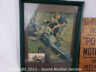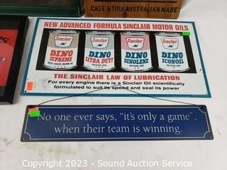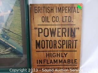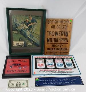 Lot #0257: 5pc Automotive, Tin, Wood Signs, Photo