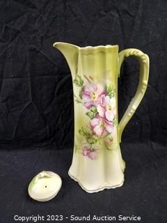 Lot Details: Could use a good cleaning, discolored from sitting on a shelf. 11.5" H x 4" Dia pitcher.