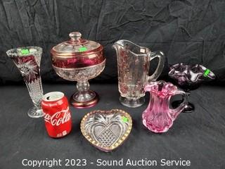 Lot #0179: 6pc Crystal/Glass Pink , Purple Glassware