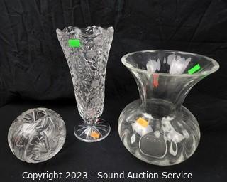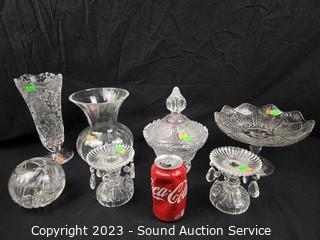Lot #0165: 7pc Crystal & Clear Glassware Decor