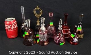 Lot #0101: 9pc Ruby & Cranberry Glass Bells
