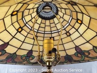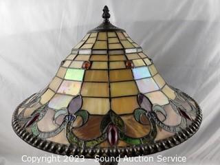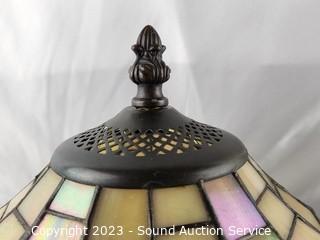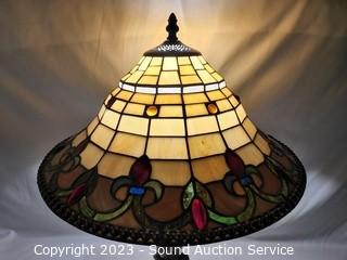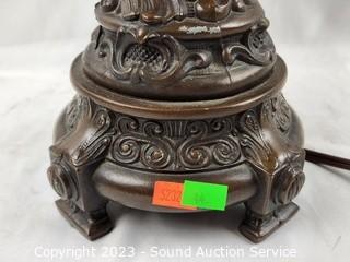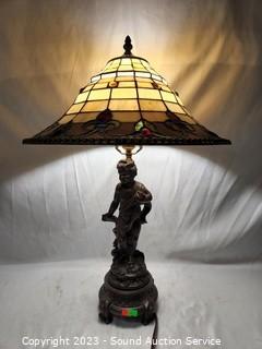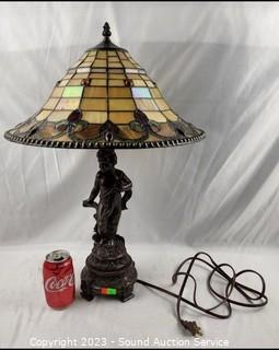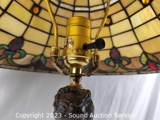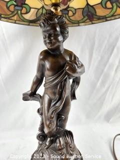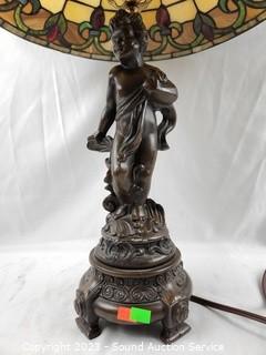 Lot #0044: Bronze Finish Greek Child Leaded Glass Lamp