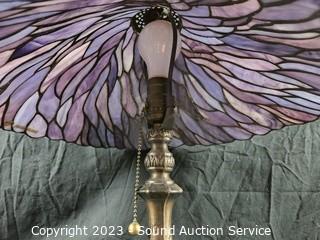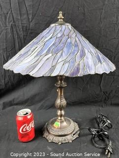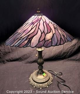Lot #0211: Bronze Finish Leaded Glass Shade Table Lamp