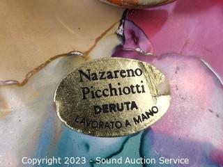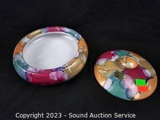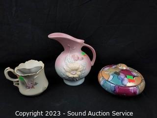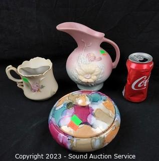 Lot Details: Nazareno Picchiotti Deruta covered dish, Hull Art Pottery pitcher, Hand Painted Nippon (some discoloring from sitting on a shelf), don't see any major issues.