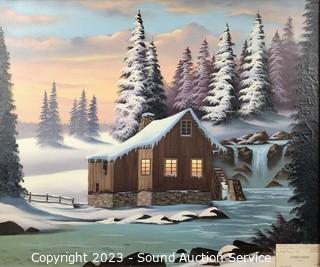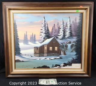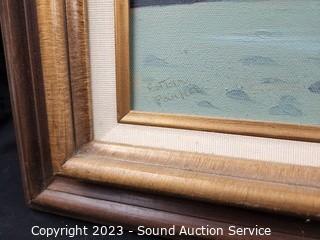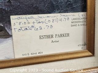 Lot Details: Signed Esther Parker. Wood frame, some scuffs. Crazing in black paint. 27" x 31".