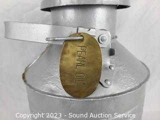 Lot Details: Been repainted silver, has a Pearl Oil brass tag. 19" H x 11" Dia.