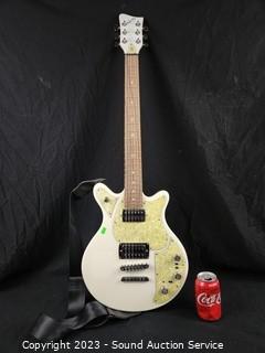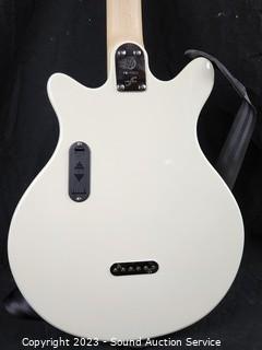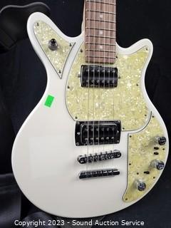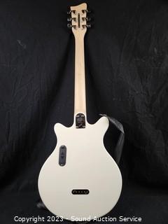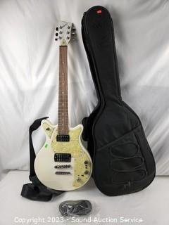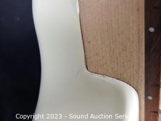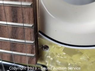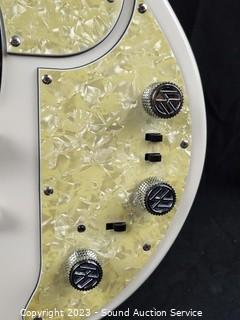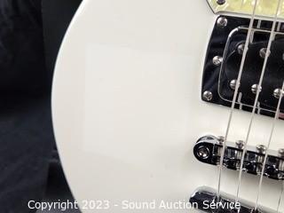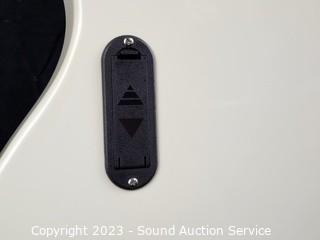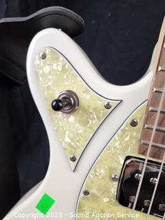 Lot Details: Comes with audio cable, appears to be functioning as intended. Slight discoloration by neck, has a very small crack in the neck pocket. Model WM24422. 38" x 13". Comes with soft case.