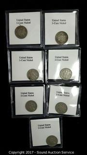 Lot #0057: (7) U.S. 3 Cent Nickels 1865-1867