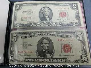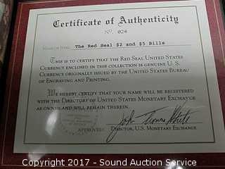 Lot #0034: Red Seal $2 and $5 Note W/ COA #24