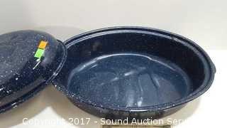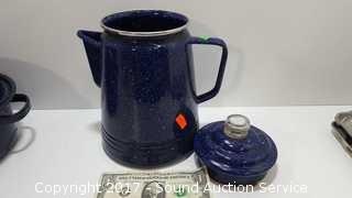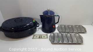 Lot #0161: Blue Enamelware Coffee Pot, Roasting Pan & More