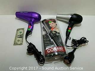 Lot #0042: Conair Curling Iron & 2 Blow Dryers